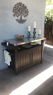 Keter Unity Xl Portable Outdoor Table And Storage Cabinet With Hooks For Grill Accessories-Stainless Steel Top For Patio Kitchen Island Or Bar Cart, Dark Grey - Amazon Com Keter Unity Xl Portable Outdoor Table And Storage Cabinet With Hooks For Grill Accessories Stainless Steel Top Pacific Cool Bar Outdoor Patio Furniture And Hot Tub Side Table Espresso Brown : Most popular keter artisan 9x7 foot large outdoor shed.. When your outdoor space is limited but you don't want to give up style & function, look no further than the unity entertainment storage cart / prep station with metal table top by keter. Keter unity xl patio storage 78 gal. Most popular keter artisan 9x7 foot large outdoor shed. Outdoor patio furniture get together bring your family and friends together with garden and patio furniture that's comfortable, inviting, and durable enough to last for years. Outdoor kitchen grilling food prep table storage station stainless steel top 48 $189.90.